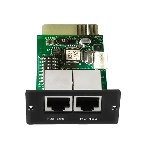 - Die Modbus-Karte ermöglicht eine zuverlässige Kommunikation zwischen USV-Anlagen oder Photovoltaik-Wechselrichtern und Computern und Überwachungssystemen, die das Standardprotokoll Modbus RTU verwenden.