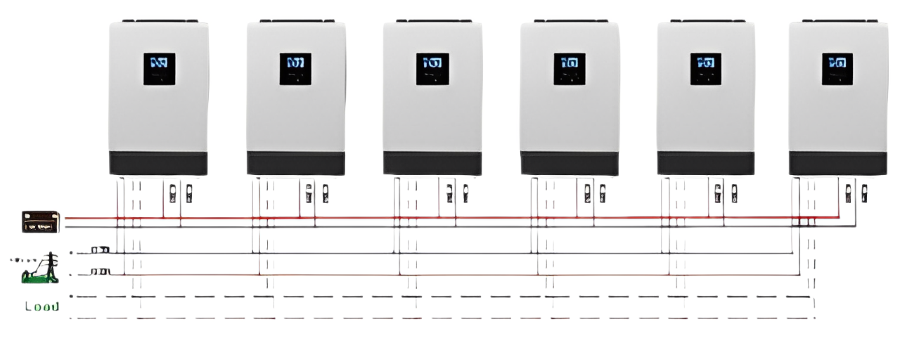 In einer einphasigen Konfiguration können bis zu vier Wechselrichter parallel geschaltet werden. Diese Konfiguration erhöht die Gesamtausgangsleistung und ist damit eine ideale Lösung, wenn eine höhere Leistung zur Unterstützung mehrerer Geräte erforderlich ist. Es ist eine perfekte Option für Benutzer, die ein skalierbares System benötigen, das mit ihrem steigenden Energiebedarf mitwachsen kann.